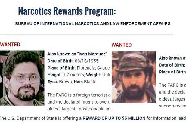 En los últimos días, el gobierno norteamericano, en cabeza del Departamento de Estado de los Estados Unidos ha confirmado que mantiene a los narcoterroristas de las FARC, alias “Timochenko” e “Iván Marquez” y a otros 15 miembros de esta organización criminal en el listado de terroristas considerados peligrosos manteniendo así mismo la recompensa por cada uno de estos.
