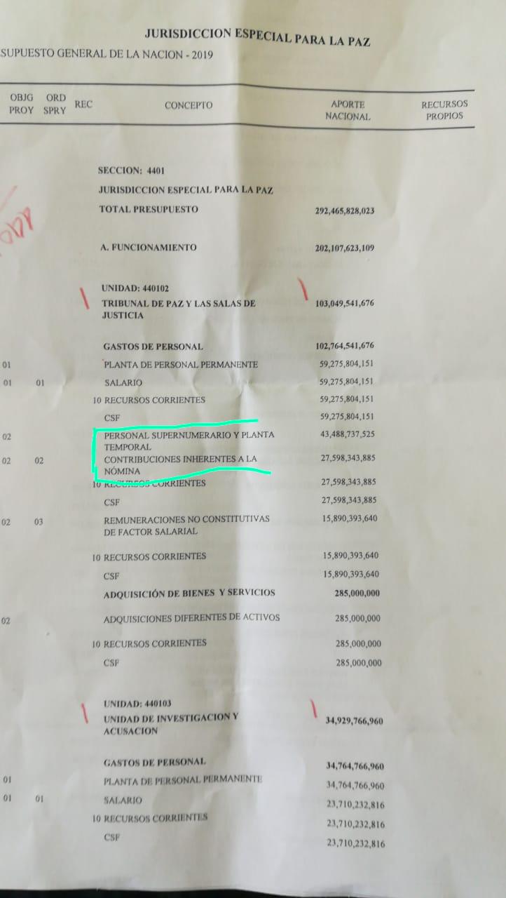 En su momento, así lo dío a conocer RCN y la FM, al revelar que de los $292.000 millones de pesos aprobados a la denominada "Jurisdicción Especial de Paz", $43.000 millones podrían ser utilizados para una nómina paralela.
